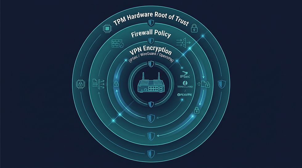 À l'ère de l'Industrie 4.0, la cybersécurité s'est étendue de la couche logicielle jusqu'à la couche matérielle physique. Les routeurs industriels 5G modernes ont construit un système de sécurité et de fiabilité à plusieurs niveaux : le chiffrement des tunnels VPN prend en charge de multiples protocoles comme PPTP, L2TP, IPSec, GRE, OpenVPN, WireGuard ; les politiques de pare-feu granulaires permettent le contrôle d'accès ; le module de plateforme de confiance TPM 2.0 sert d'« ancre de confiance matérielle » pour une protection de confiance sur l'ensemble de la chaîne.