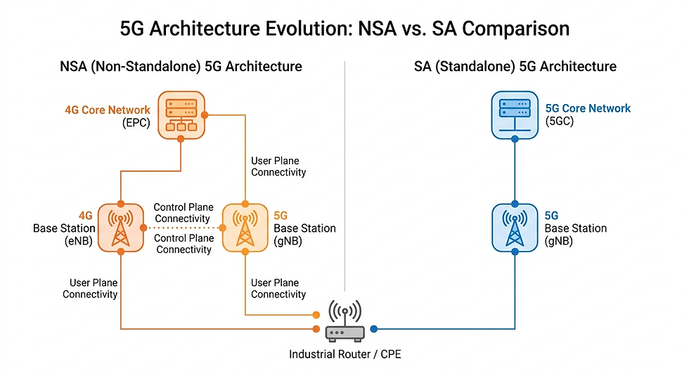 Le déploiement actuel des réseaux 5G présente deux modes : Standalone (SA) et Non-Standalone (NSA). Un bon routeur industriel 5G doit prendre en charge ces deux modes simultanément, afin de s'adapter aux différentes étapes de déploiement réseau selon les pays et les régions.